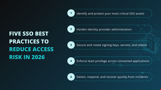 The following five best practices reflect the most common SSO failure points and outline how organizations can reduce identity risk in 2026.
